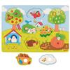There's something in the background! Someone is looking rather curiously through the round puzzle cut-outs that make it easier for the child to remove the pieces. High play incentive is guaranteed and communication between adults and child is expressly desired.