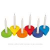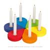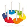 A different kind of birthday wreath: the 6 wooden candle holders glow in the colours of the rainbow and can be arranged individually and creatively on the birthday table.