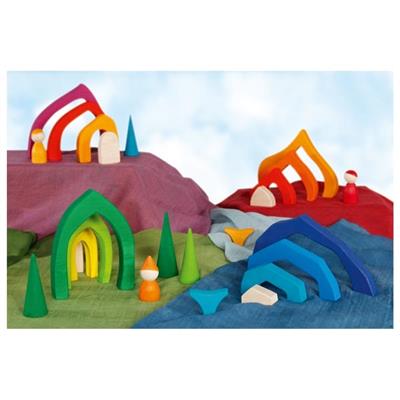Made of maple wood and Made in Europe: the lovingly designed building blocks in rainbow colours represent the four seasons and encourage imaginative free play.
