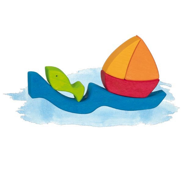 The wooden building blocks from goki evolution are made of maple wood in Europe. But it's the children who decide what they become. They have the power, we only have the material. And even if we think that the beautifully coordinated coloured wooden pieces seem to depict a boat in front of a sunrise over an ocean, it may actually be something completely different. And it is created by children. That's what this high-quality wooden toy is all about.
