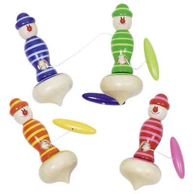 The fast, long lasting rotations of the spinning top impress all children and fix their gaze. The string is rolled on the stick and is pulled out fast before the top starts to spin.