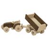 The tractor from the new product line „goki nature“ and the trailer with tipping function make the work playful. Massive, natural beech wood from replenishable EU woodland.